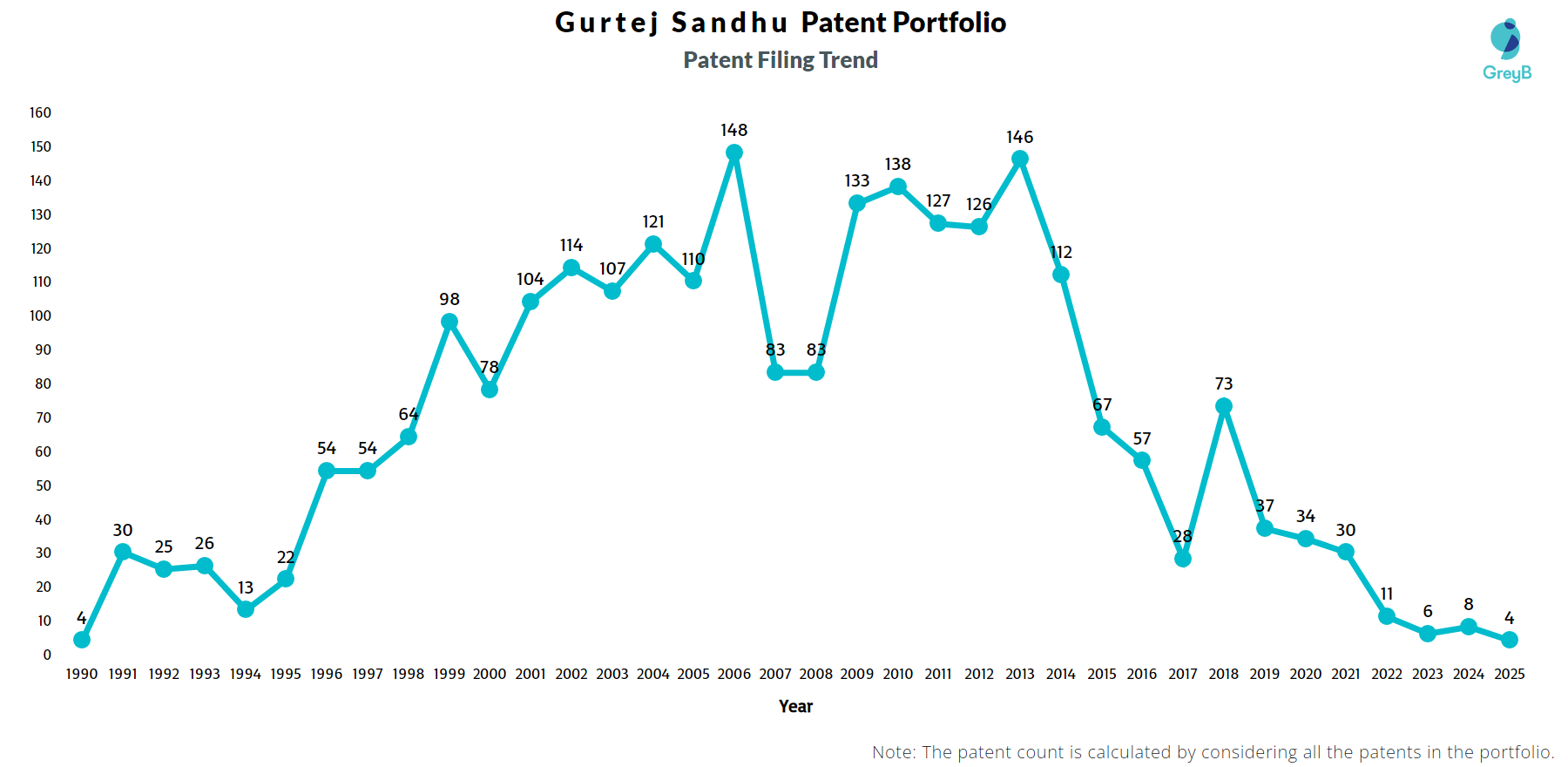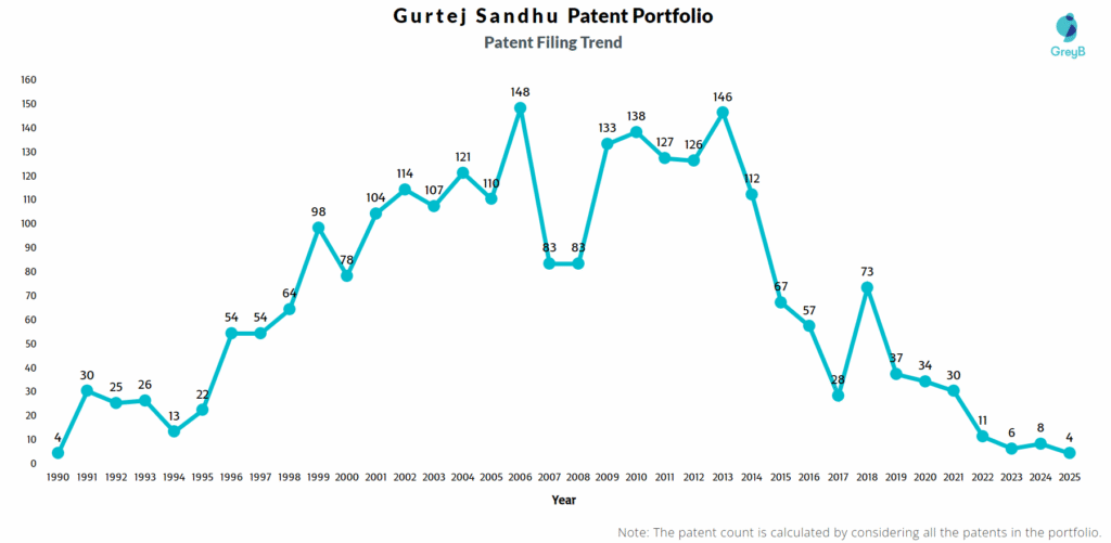 How Many Patents did Gurtej Sandhu File Every Year?