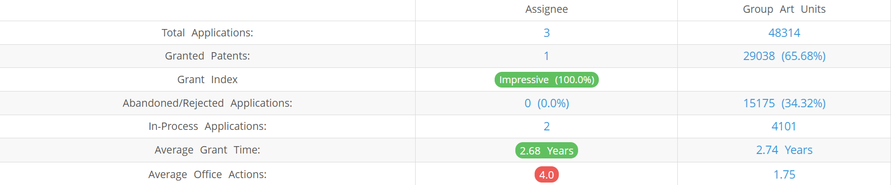 Below are the key stats of H&M patent prosecution at the USPTO.