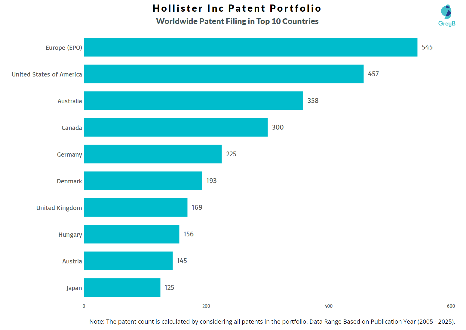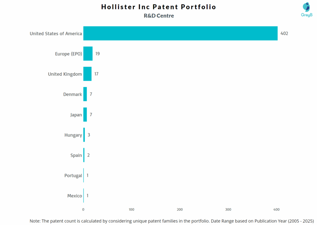 How Many Patents did Hollister Inc File in Different Countries?