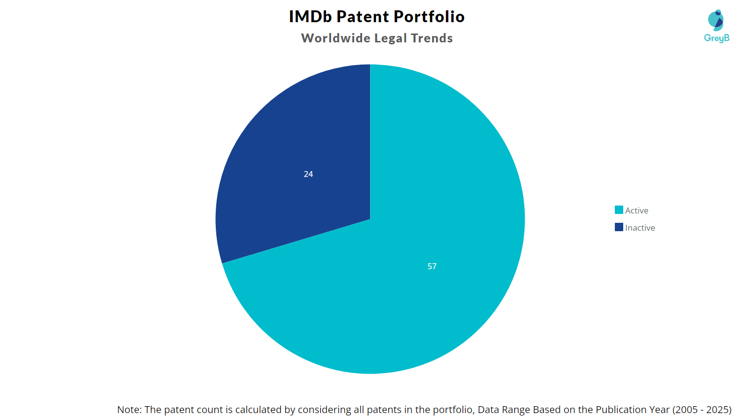 IMDb has a total of 81 patents globally. These patents belong to 43 unique patent families. Out of 81 patents, 57 patents are active.