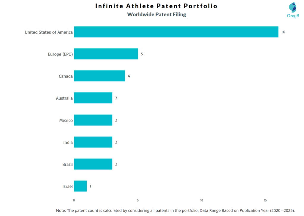 Infinite Athlete has a total of 45 patents globally, out of which 22 have been granted. Of these 45 patents, more than 82% patents are active. United States of America is where Infinite Athlete has filed the maximum number of patents, followed by Europe (EPO) and Canada. Parallelly, United States of America seems to be the main focused R&D centre and also is the origin country of Infinite Athlete.