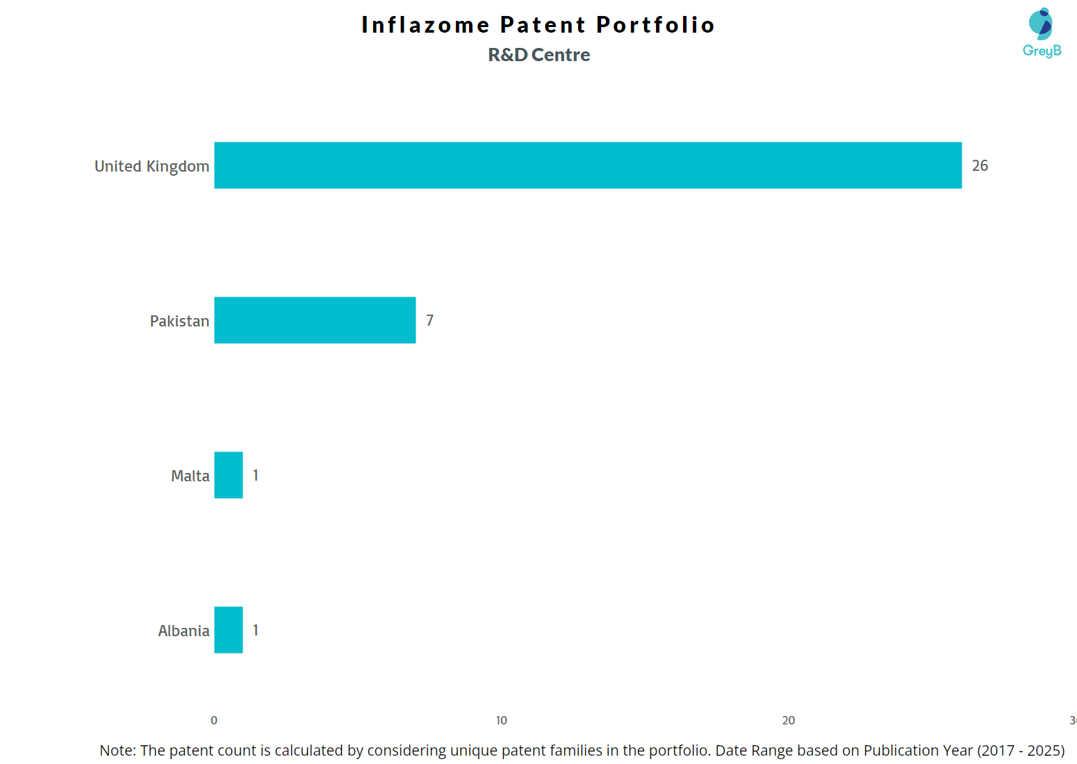 Inflazome has a total of 434 patents globally, out of which 71 have been granted. Of these 434 patents, more than 51% patents are active. United Kingdom is where Inflazome has filed the maximum number of patents, followed by Europe (EPO) and United States of America. Parallelly, United Kingdom seems to be the main focused R&D centre and Ireland is the origin country of Inflazome.