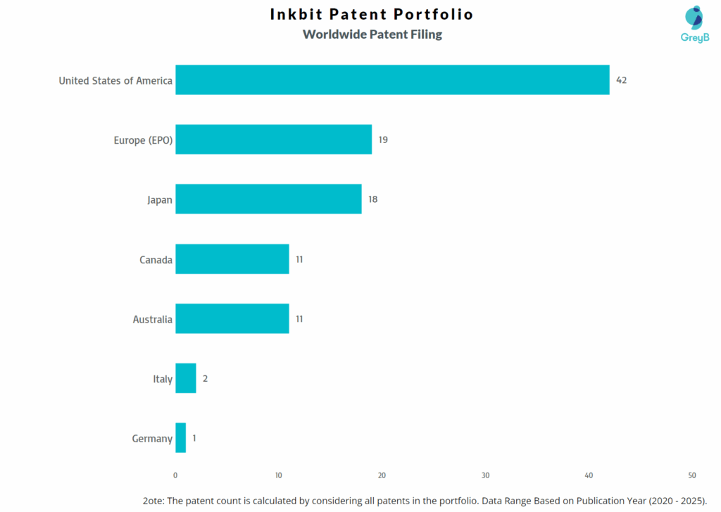 Inkbit has a total of 135 patents globally, out of which 40 have been granted. Of these 135 patents, more than 57% patents are active. United States of America is where Inkbit has filed the maximum number of patents, followed by Europe (EPO) and Japan. Parallelly, United States of America seems to be the main focused R&D centre and also is the origin country of Inkbit.