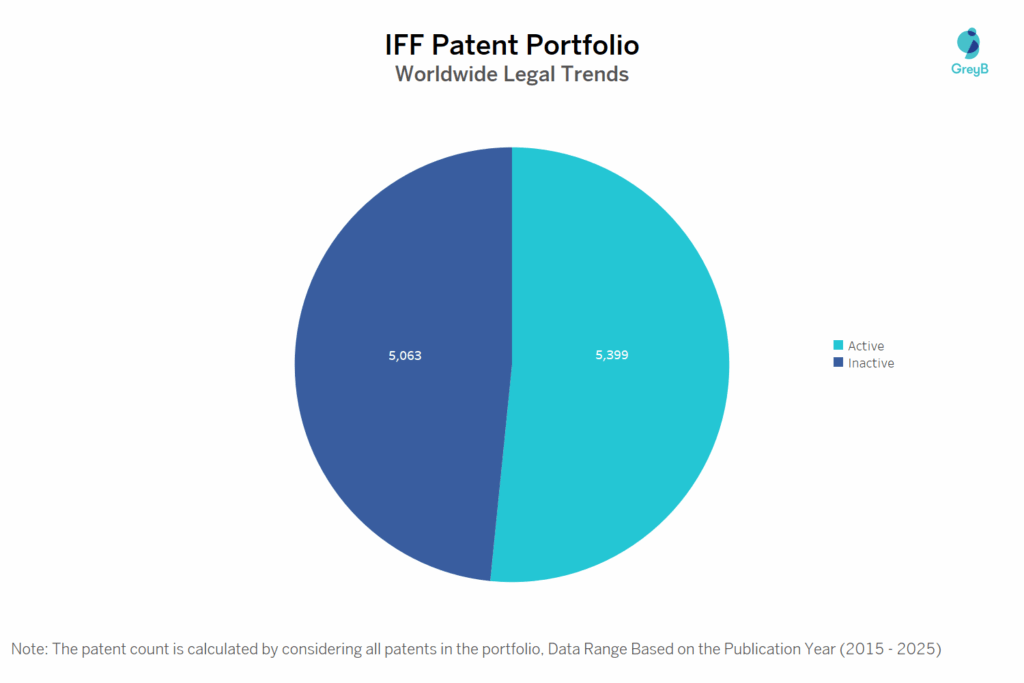 International Flavors & Fragrances has a total of 10462 patents globally. These patents belong to 1970 unique patent families. Out of 10462 patents, 5399 patents are active.