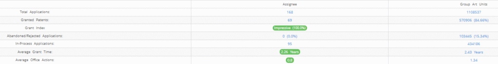 IonQ (Excluding its subsidiaries) has filed 168 patent applications at USPTO so far (Excluding Design and PCT applications). Out of these 69 have been granted leading to a grant rate of 100%.