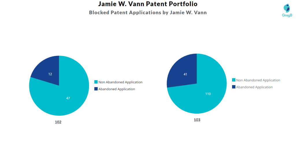 Count of 102 and 103 Type Rejections based on Jamie W Vann Patents