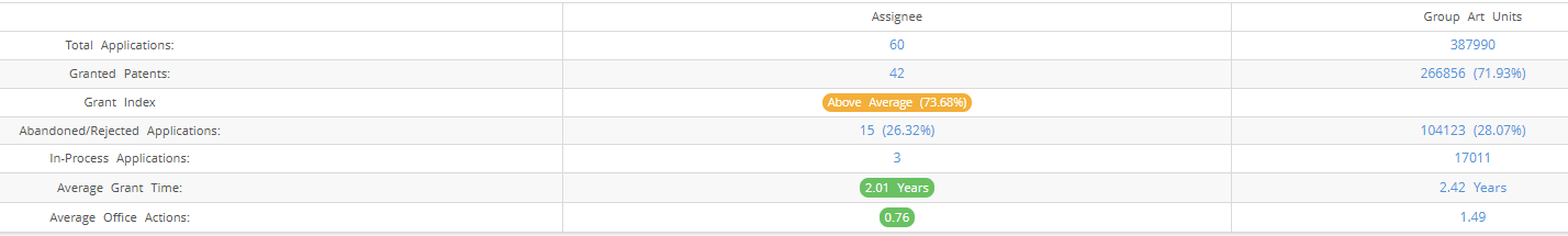 Below are the key stats of Kirin Brewery patent prosecution at the USPTO.