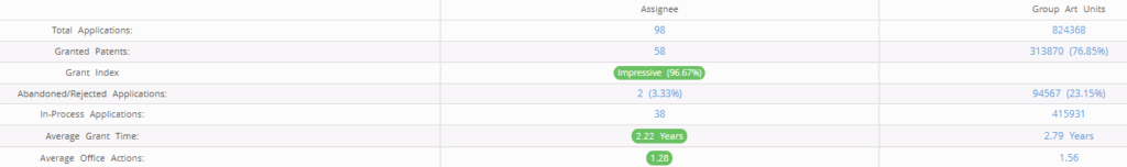 | Light Field Lab Inc (Inhouse IP Dept) | 97 | 96.67% |