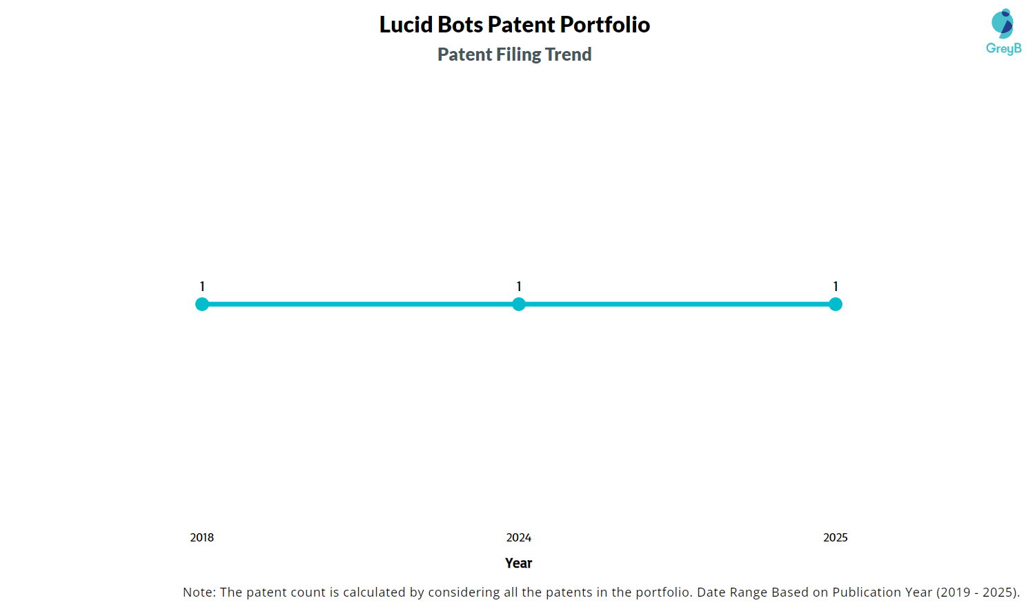 Lucid Bots (Excluding its subsidiaries) has filed 1 patent applications at USPTO so far (Excluding Design and PCT applications). Out of these 0 have been granted leading to a grant rate of 0.0%.