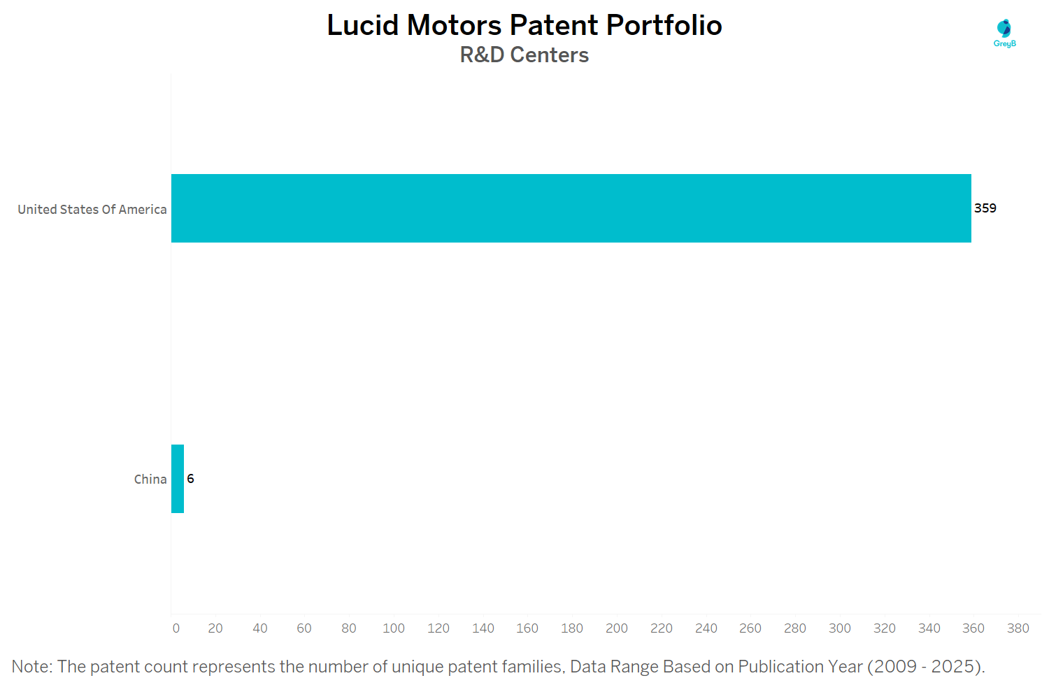 Lucid Motors has a total of 1245 patents globally, out of which 684 have been granted. Of these 1245 patents, more than 78% patents are active. United States of America is where Lucid Motors has filed the maximum number of patents, followed by Europe (EPO) and China. Parallelly, USA seems to be the main focused R&D center and also is the origin country of Lucid Motors.