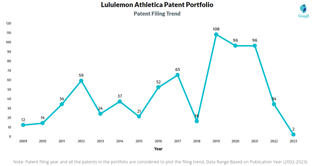 Do read about some of the most popular patents of Lululemon Athletica which have been covered by us in this article and also you can find Lululemon Athletica patents information, the worldwide patent filing activity and its patent filing trend over the years, and many other stats over Lululemon Athletica patent portfolio.
