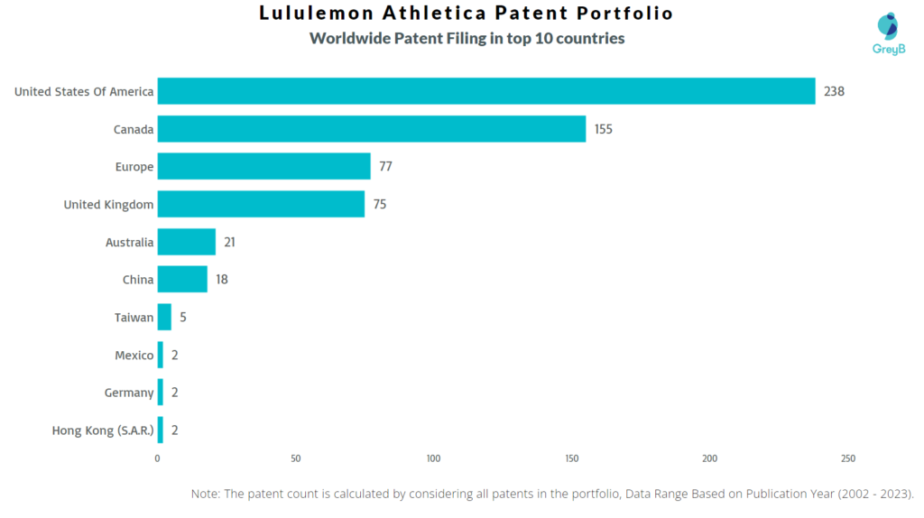 How Many Patents did Lululemon Athletica File in Different Countries?