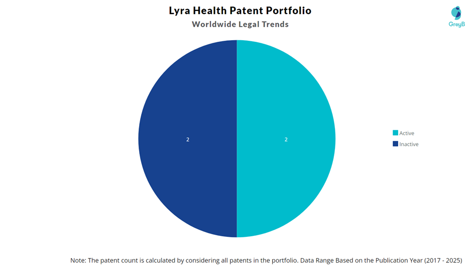 Lyra Health has a total of 4 patents and all these patents belong to unique patent families. Out of 4 patents, 2 patents are active.