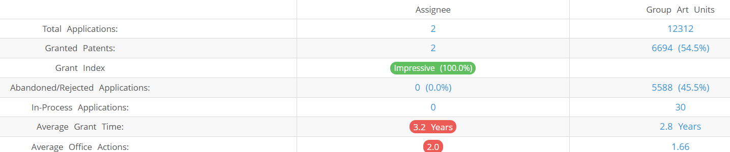 ManpowerGroup (Excluding its subsidiaries) has filed 2 patent applications at USPTO so far (Excluding Design and PCT applications). Out of these 2 have been granted leading to a grant rate of 100%.