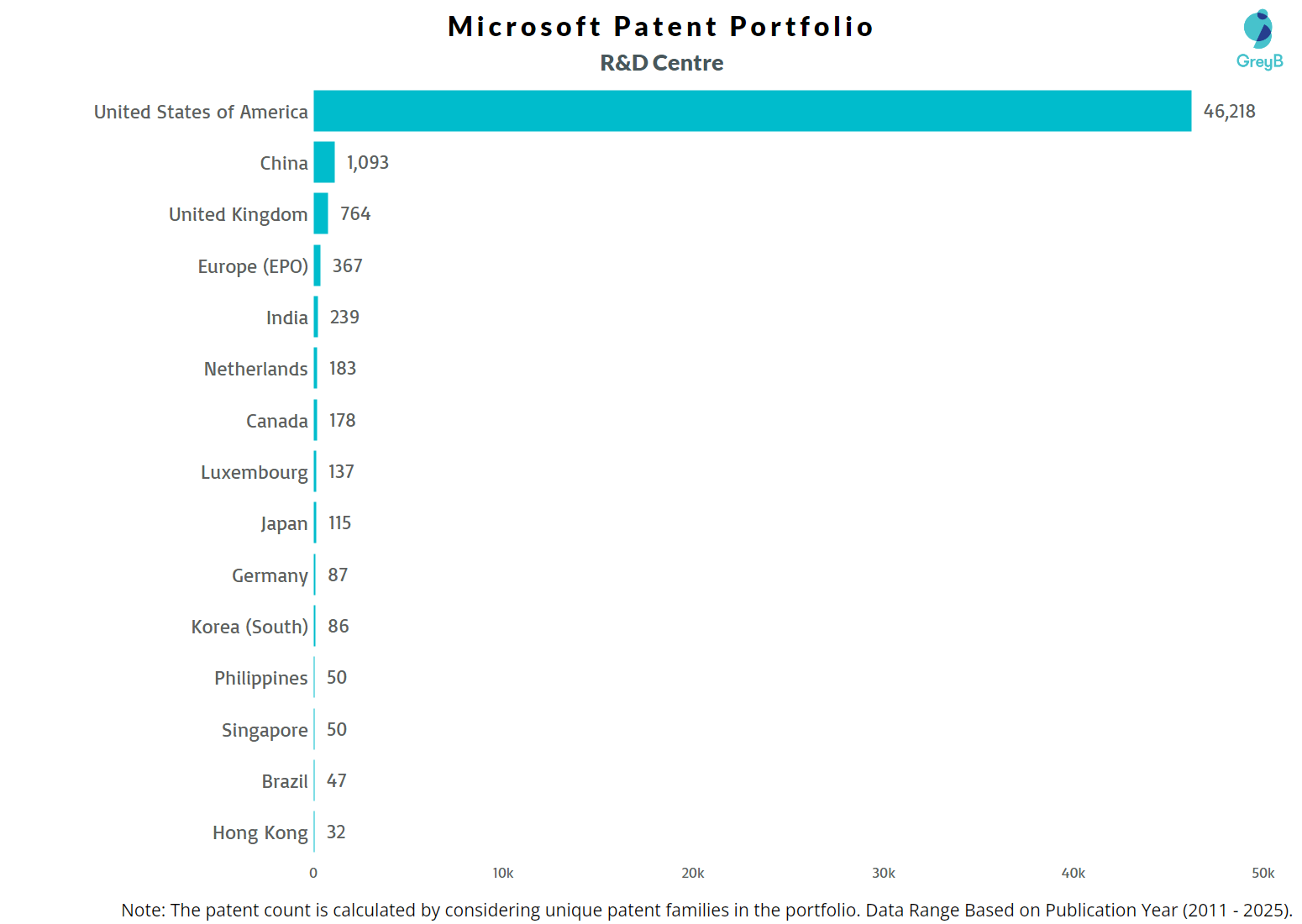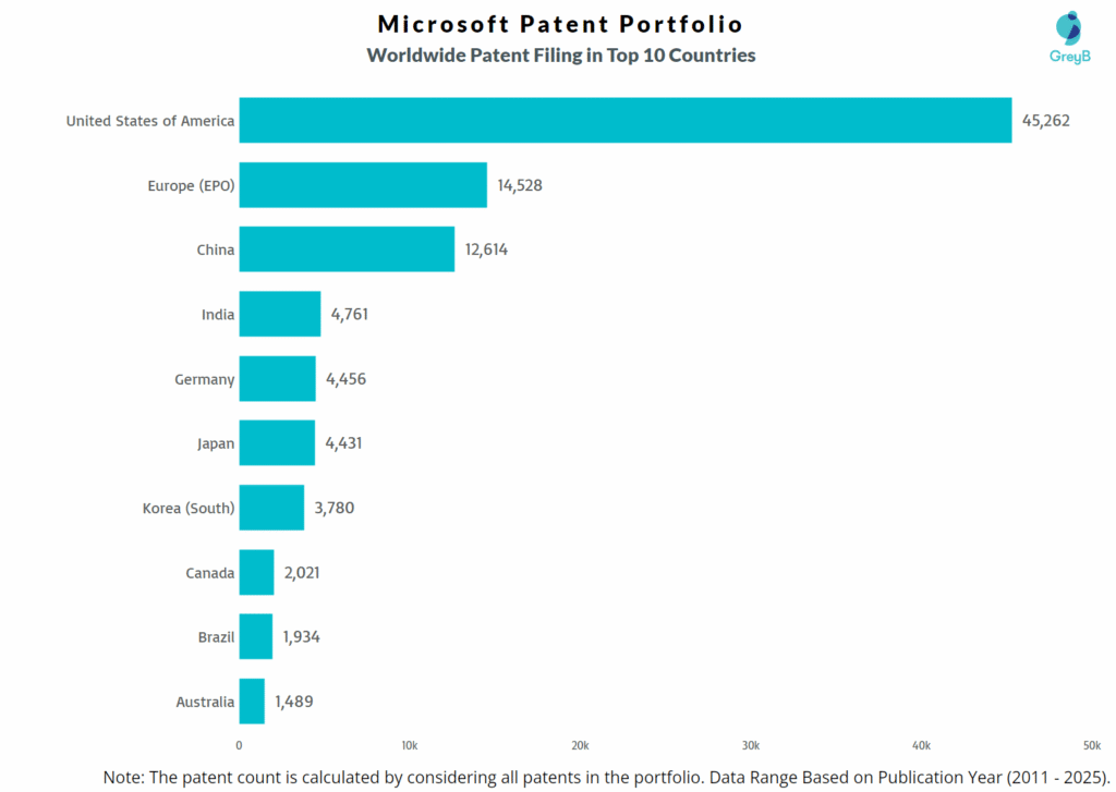 How Many Patents did Microsoft File in Different Countries?