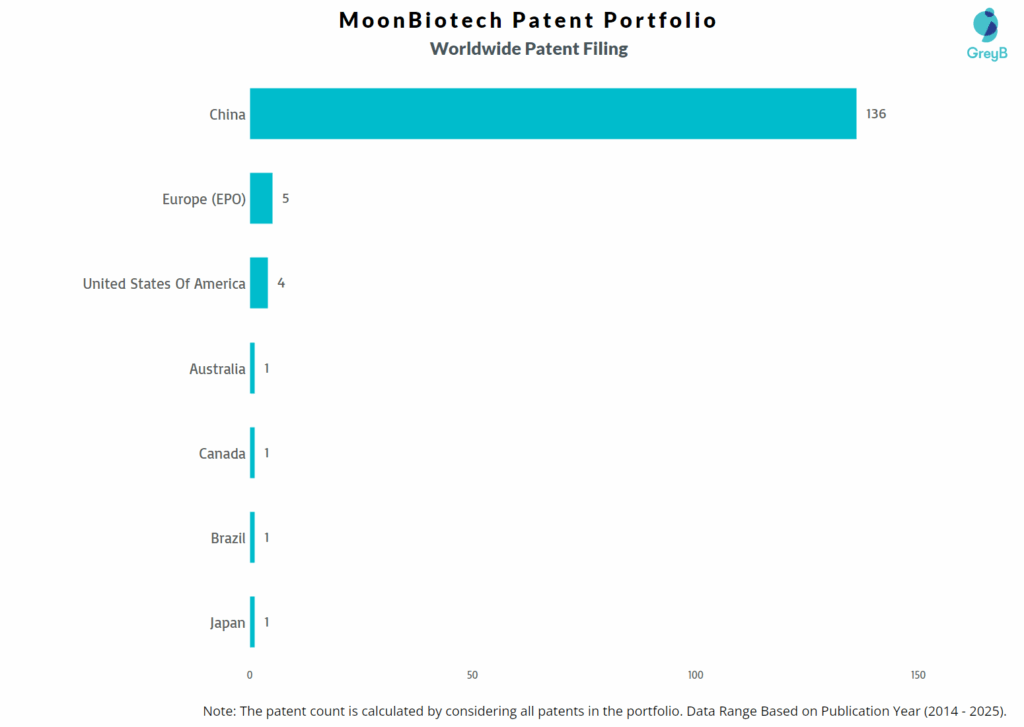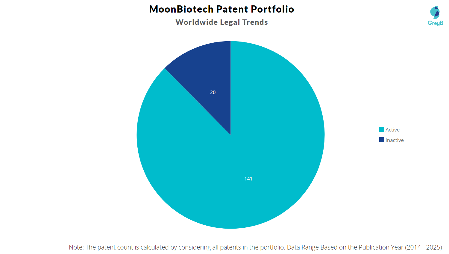 MoonBiotech has a total of 161 patents globally. These patents belong to 123 unique patent families. Out of 161 patents, 141 patents are active.