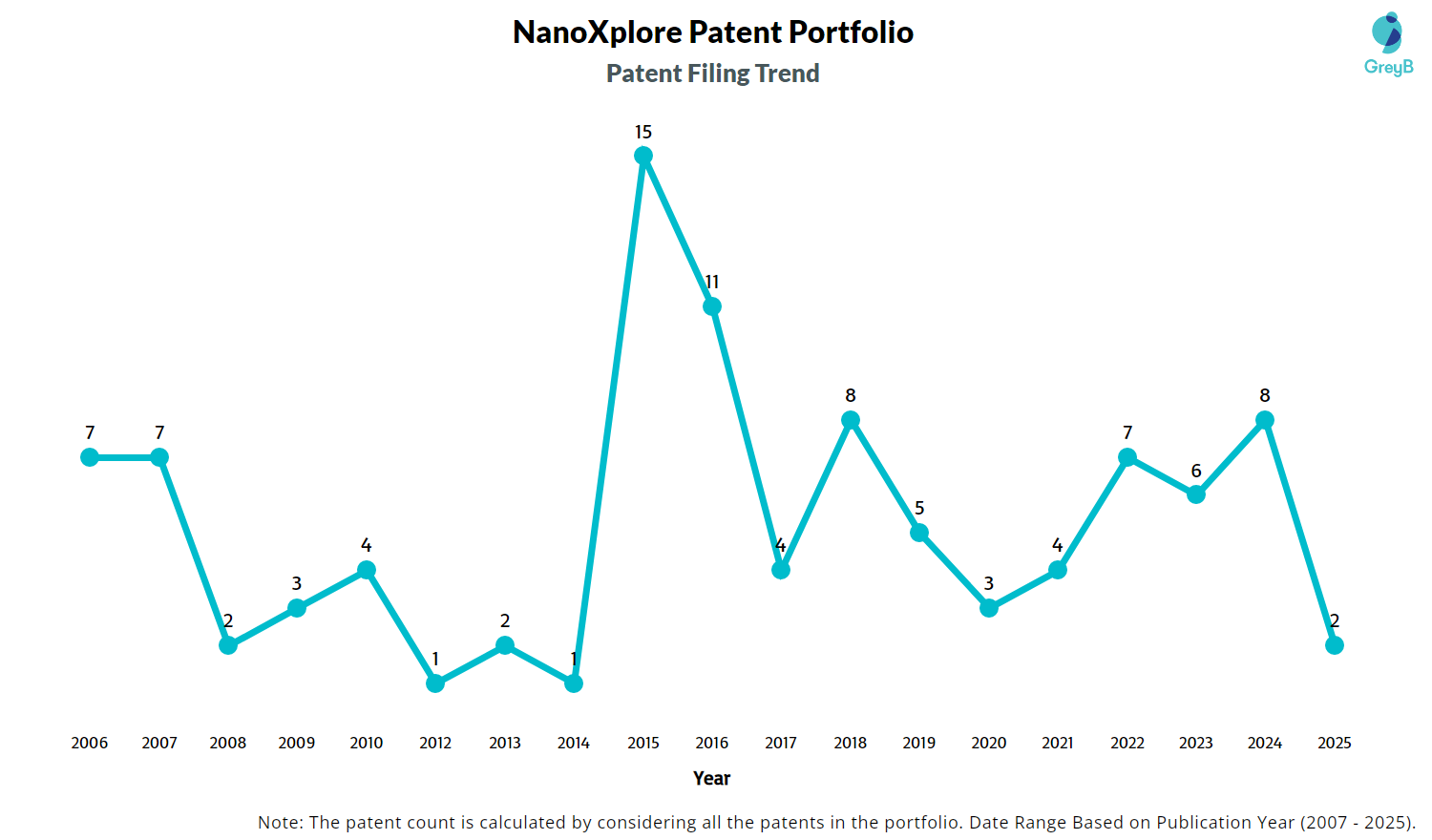 NanoXplore has a total of 100 patents globally. These patents belong to 34 unique patent families. Out of 100 patents, 65 patents are active.