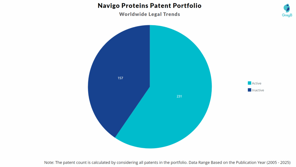 Navigo Proteins has a total of 388 patents globally. These patents belong to 49 unique patent families. Out of 388 patents, 231 patents are active.