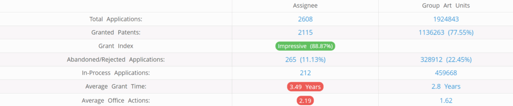 Below are the key stats of Nintendo patent prosecution at the USPTO.