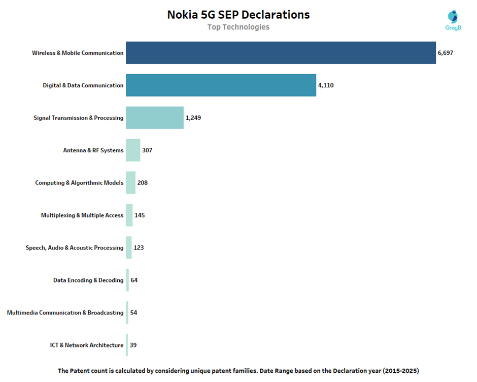 Technology Breakdown of Nokia 5G SEP Declarations