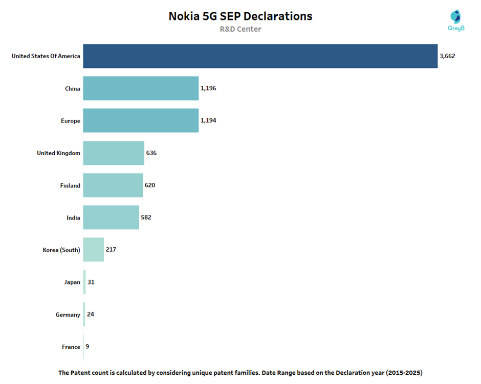Where Are Nokia 5G SEP Declared Patent R&D Centre Located?