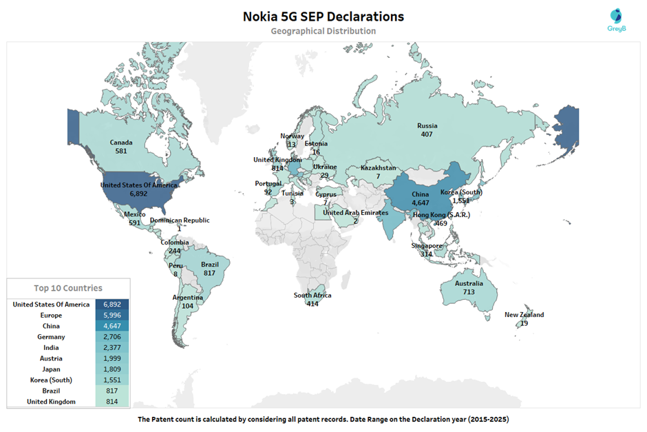 How Nokia 5G SEP Declared Patents Are Distributed Worldwide?