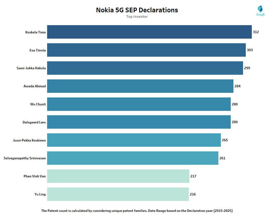 Who Are the Key Inventors for Nokia 5G SEP Declared Patents?