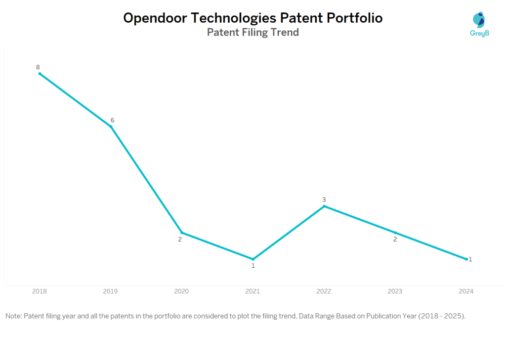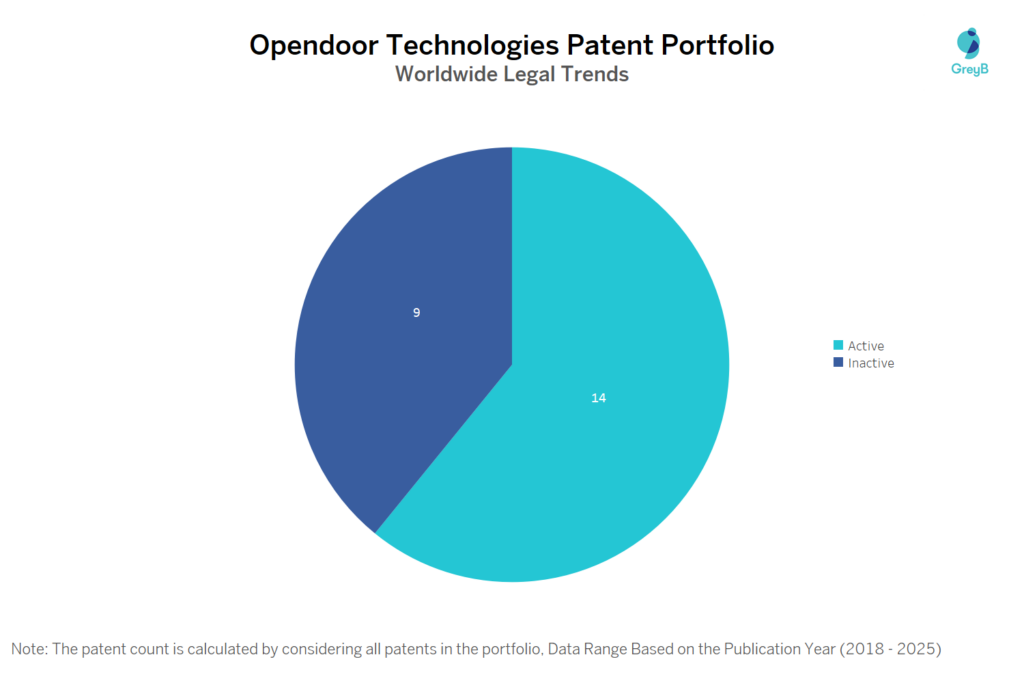 Opendoor Technologies has a total of 23 patents globally. These patents belong to 17 unique patent families. Out of 23 patents, 14 patents are active.