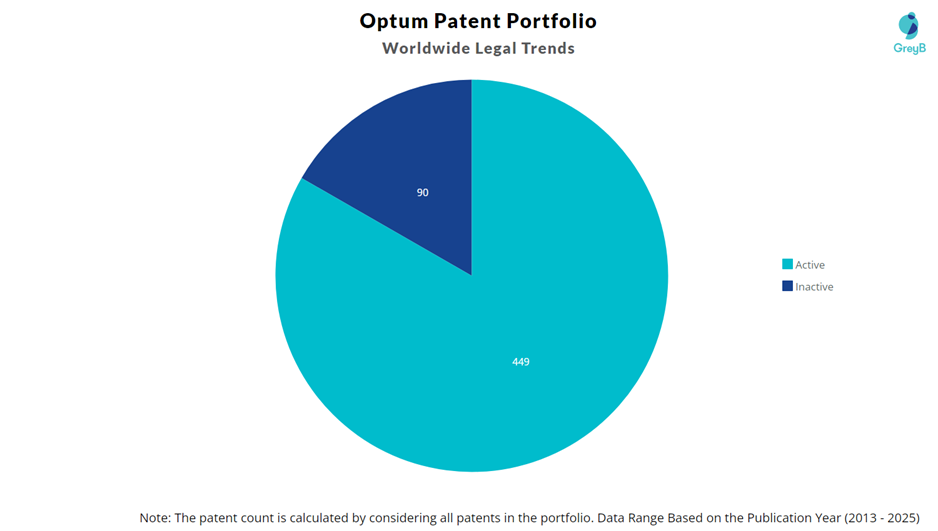 Optum Inc has a total of 539 patents globally. These patents belong to 403 unique patent families. Out of 539 patents, 449 patents are active.