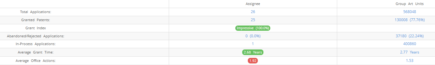 Orcan Energy (Excluding its subsidiaries) has filed 26 patent applications at USPTO so far (Excluding Design and PCT applications). Out of these 25 have been granted leading to a grant rate of 199%.
