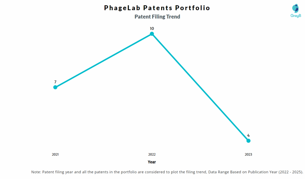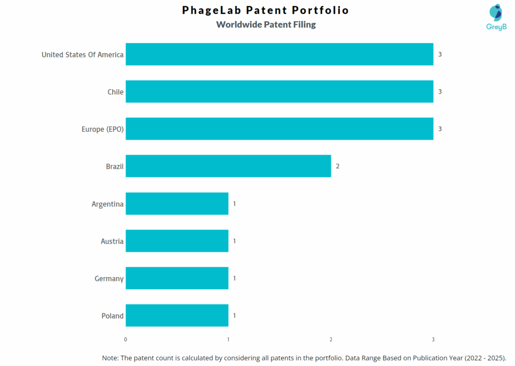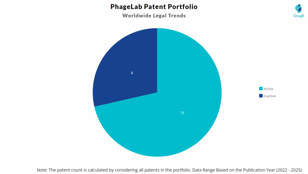 PhageLab has a total of 21 patents globally. These patents belong to 7 unique patent families. Out of 21 patents, 15 patents are active.