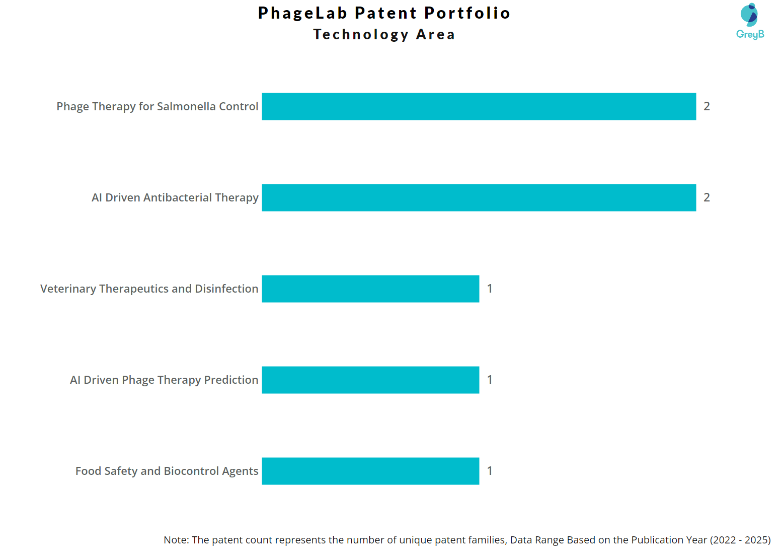 Phagelab’s patent filings cover areas such as Salmonella control using phage cocktails, AI-assisted development of antibacterial therapies, veterinary treatments and disinfection, prediction tools for phage-bacteria matching, and food safety applications. Do read about some of the most popular patents of PhageLab which have been covered by us in this article and also you can find PhageLab patents information, the worldwide patent filing activity and its patent filing trend over the years, and many other stats over PhageLab patent portfolio.