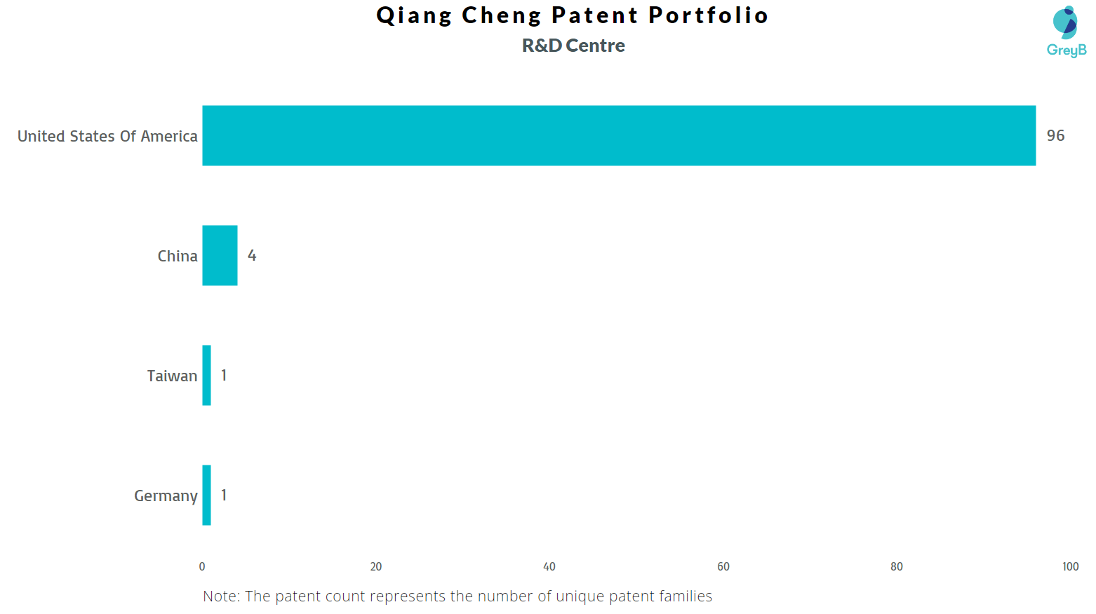Qiang Cheng has filed 114 patents, out of which 46 have been granted. Of these 114 patents, more than 66% patents are active. Out of these 114 patents 40 patents filed only in the US, out of which 23 patents has been granted.