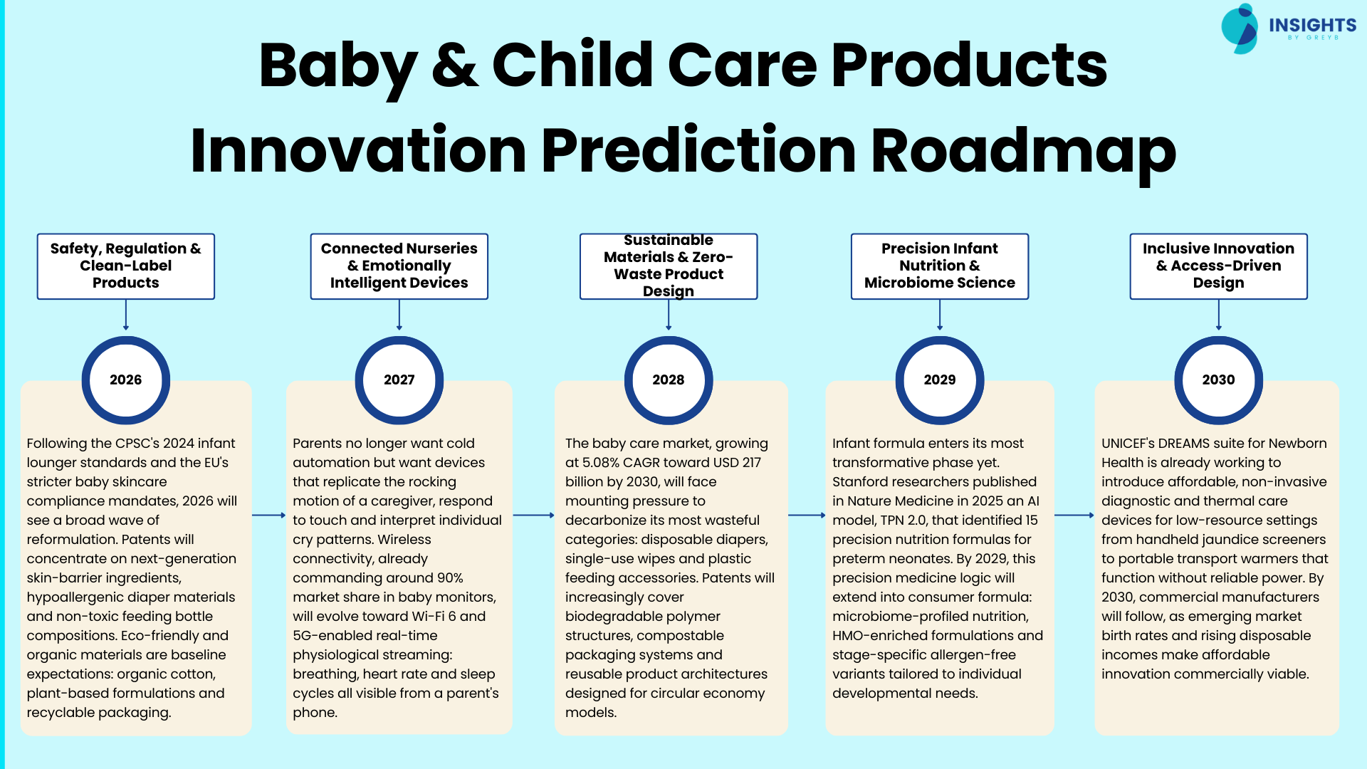 Future directions & upcoming innovation hotspots in the Baby & Child Care Products space.