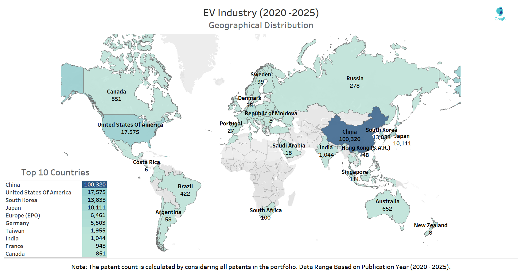Which Countries Are Leading the Global Race for Electric Vehicle (EV) industry Patents?