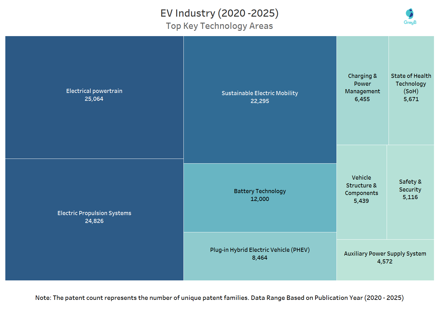 Patent data confirms this momentum. Over 120000+ EV-related patent families filed since 2020 highlight rapid advances in solid-state batteries, bidirectional charging, AI-driven vehicle systems, thermal safety, and sustainable battery materials. Established automakers and new innovators alike are aggressively securing the key technologies that will define the next generation of mobility.