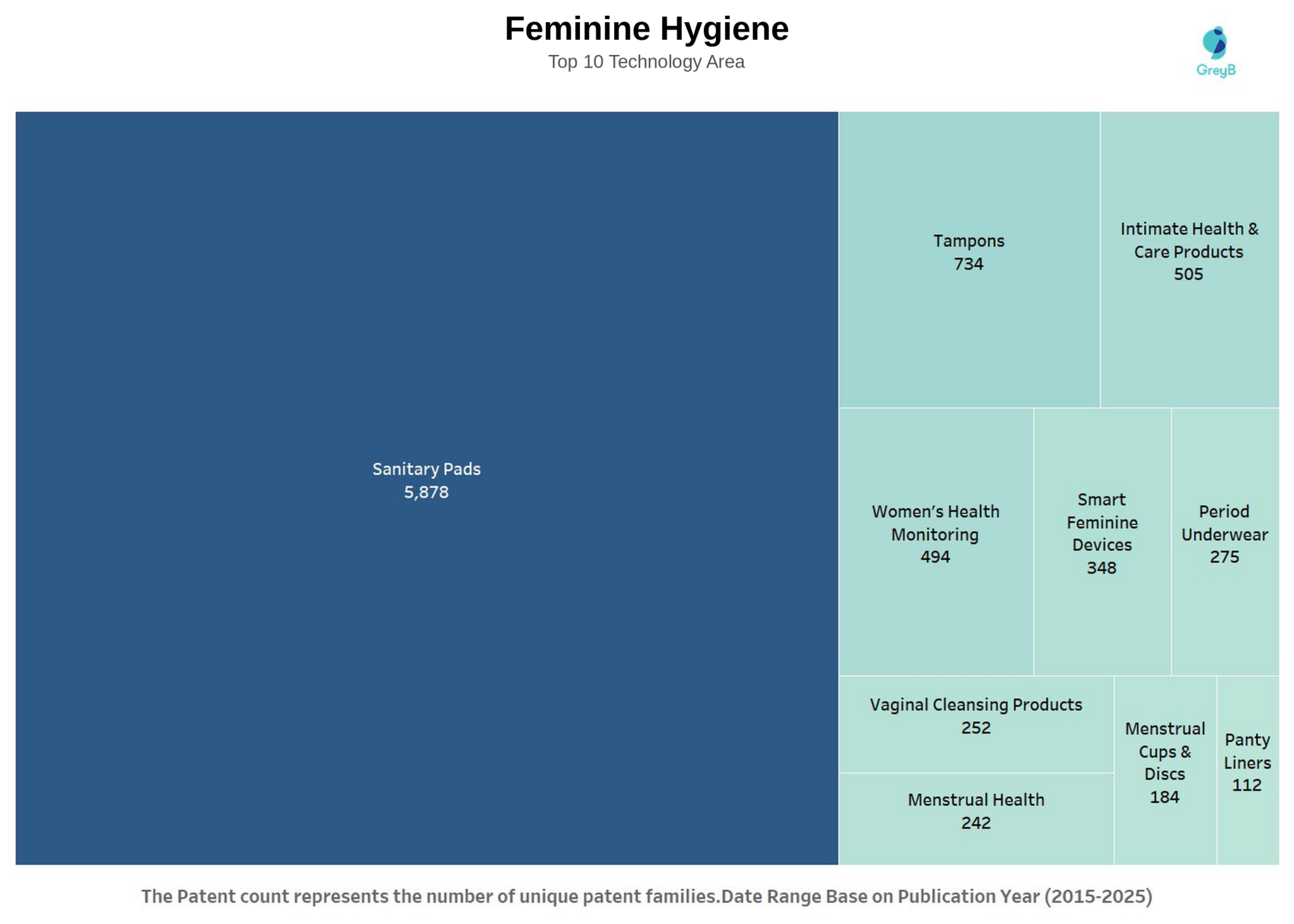 For decades, the feminine hygiene aisle has been synonymous with one product: the sanitary pad. And the numbers back it up: nearly 6 in every 10 patents filed in this space over the last decade belong to it.
