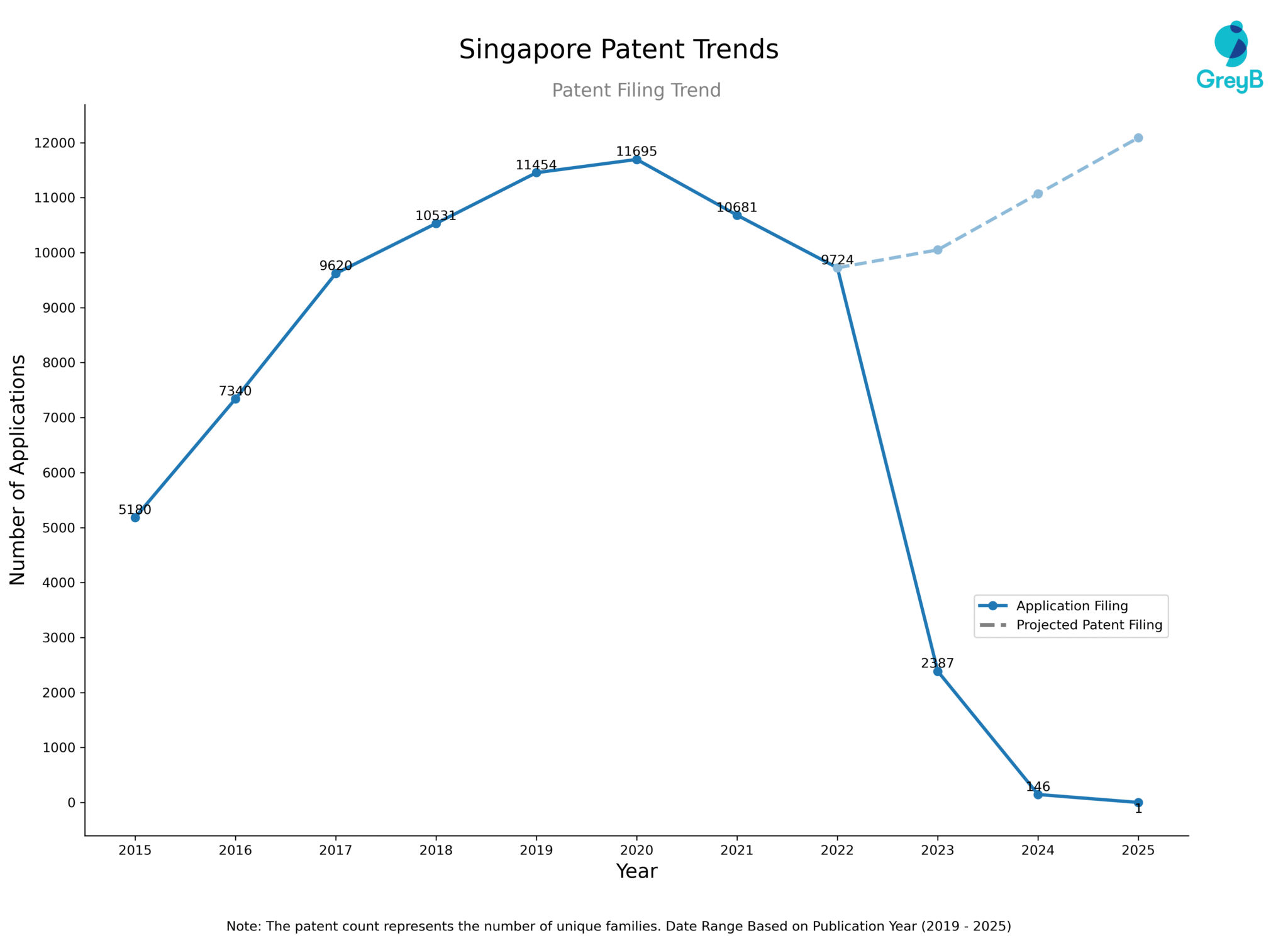 How has the Patent Filing Trend in Singapore Changed Over the Years?