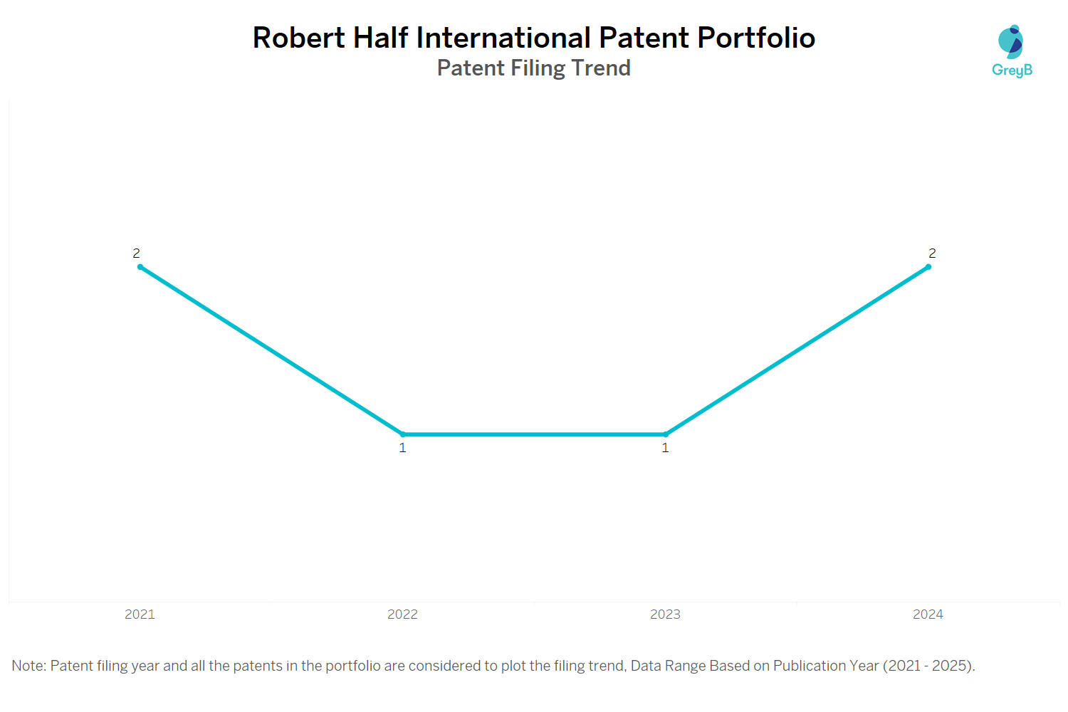 Robert Half International (Excluding its subsidiaries) has filed 1 patent applications at USPTO so far (Excluding Design and PCT applications). Out of these 0 have been granted leading to a grant rate of 0.0%.