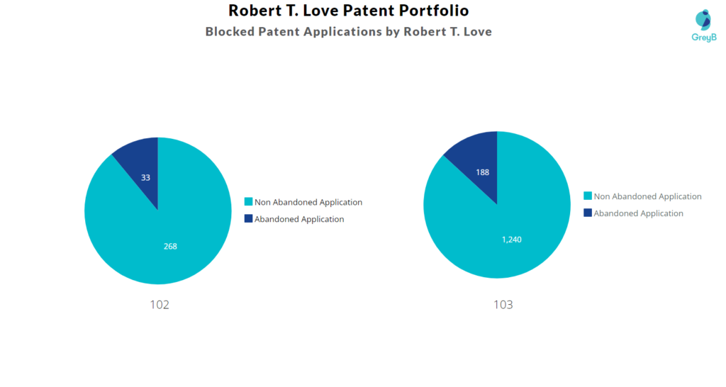 Count of 102 and 103 Type Rejections based on Robert T Love Patents