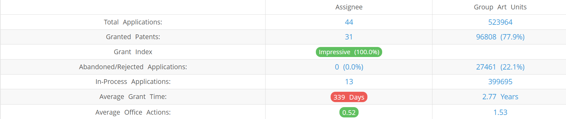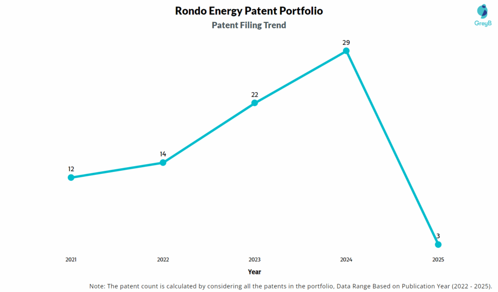 Rondo Energy (Excluding its subsidiaries) has filed 44 patent applications at USPTO so far (Excluding Design and PCT applications). Out of these 31 have been granted leading to a grant rate of 100.0%.