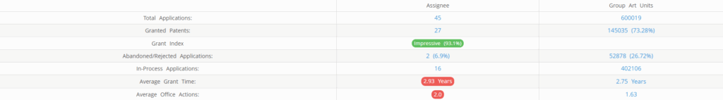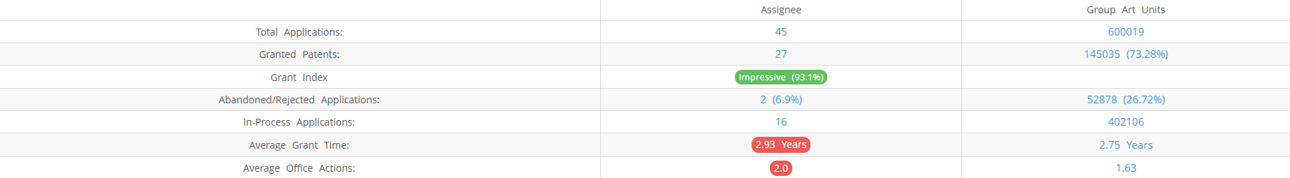 RxSafe (Excluding its subsidiaries) has filed 45 patent applications at USPTO so far (Excluding Design and PCT applications). Out of these 27 have been granted leading to a grant rate of 93.1%.