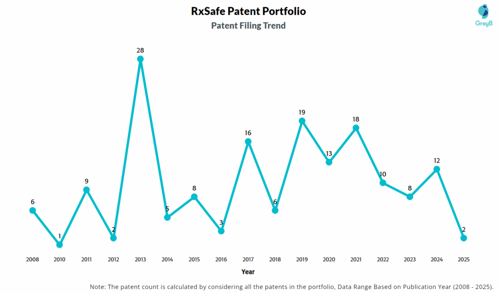 Do read about some of the most popular patents of RxSafe which have been covered by us in this article and also you can find RxSafe patents information, the worldwide patent filing activity and its patent filing trend over the years, and many other stats over RxSafe patent portfolio.