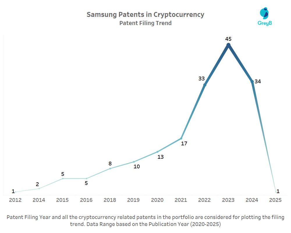 How Many Patents did Samsung file in Cryptocurrency Every Year?