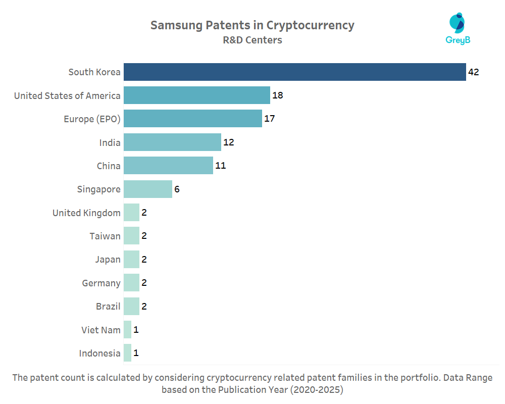 Countries in which Samsung Filed Patents in Cryptocurrency