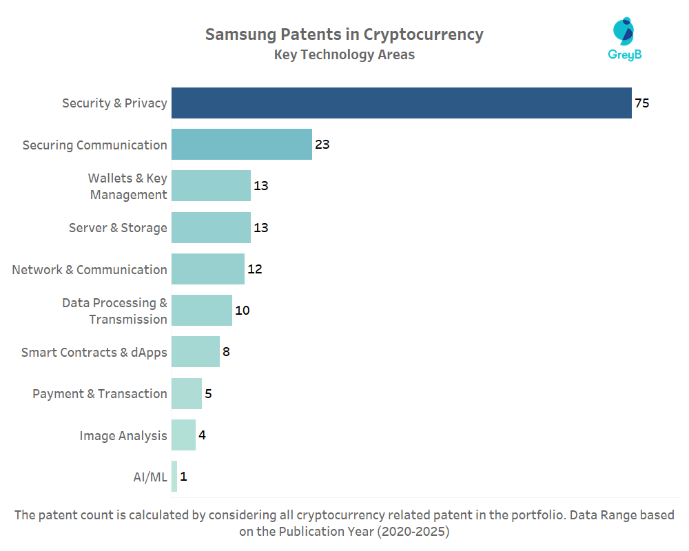 Interested in knowing about the areas of innovation that are being protected by Samsung in Cryptocurrency?
