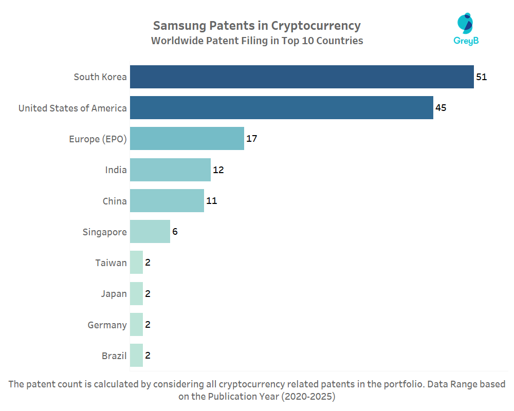 How Many Cryptocurrency Patents Has Samsung filed Across Different Countries?