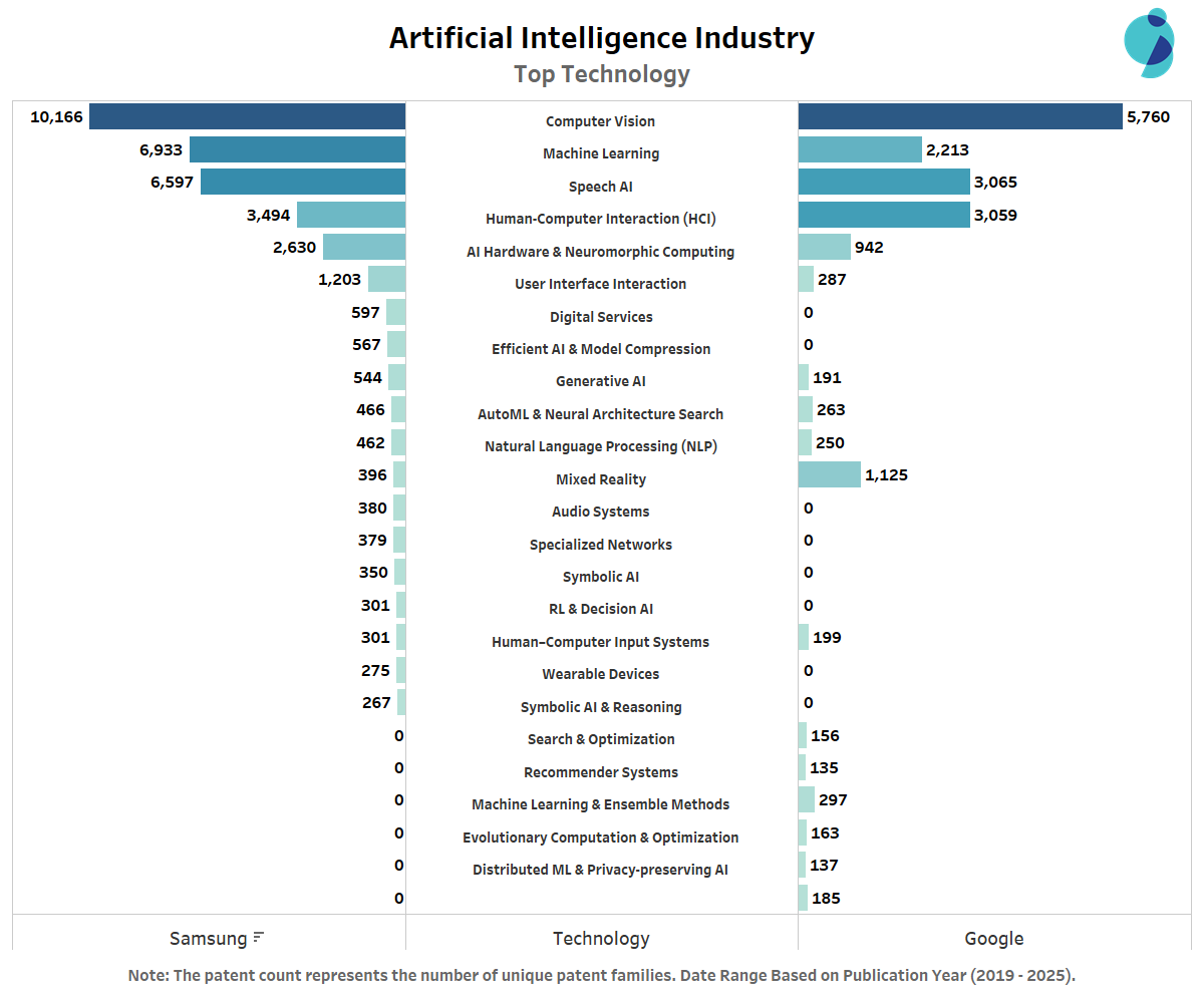Samsung is treating AI as an enterprise-wide strategic pillar, while Google appears to be selectively patenting in high-leverage AI domains particularly where hardware and software intersect.