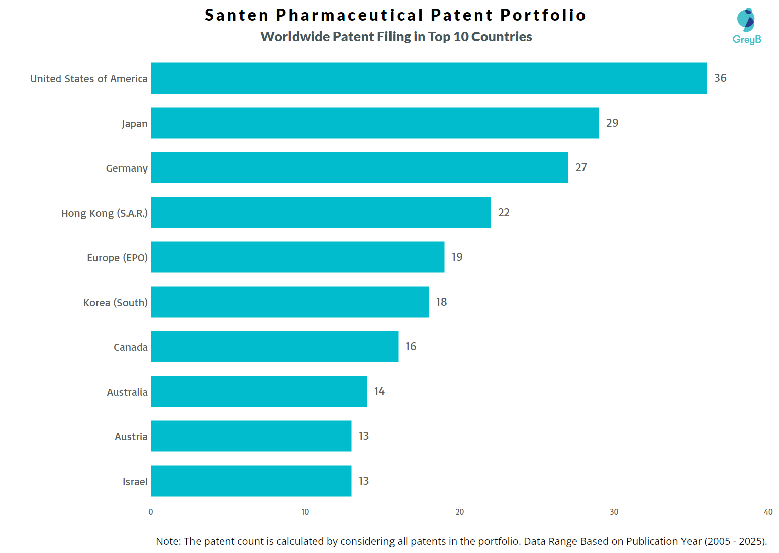 How Many Patents did Santen Pharmaceutical File in Different Countries?
