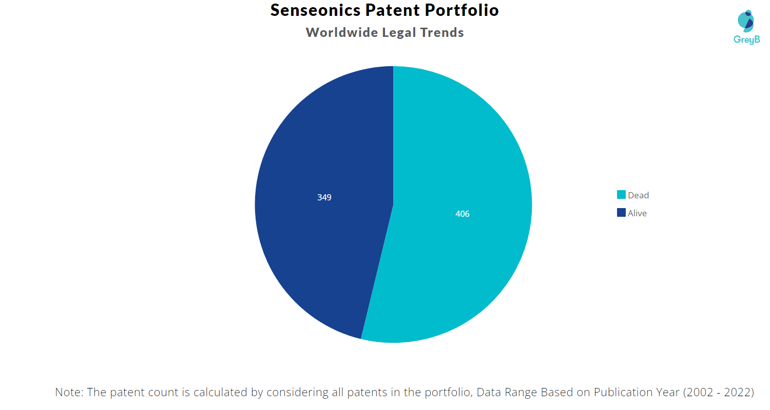 Senseonics has a total of 755 patents globally. These patents belong to 127 unique patent families. Out of 755 patents, 349 patents are active.